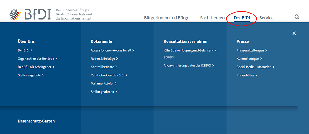 Unter dem Bereich Aktuelles finden Sie Infos über das BfDI.